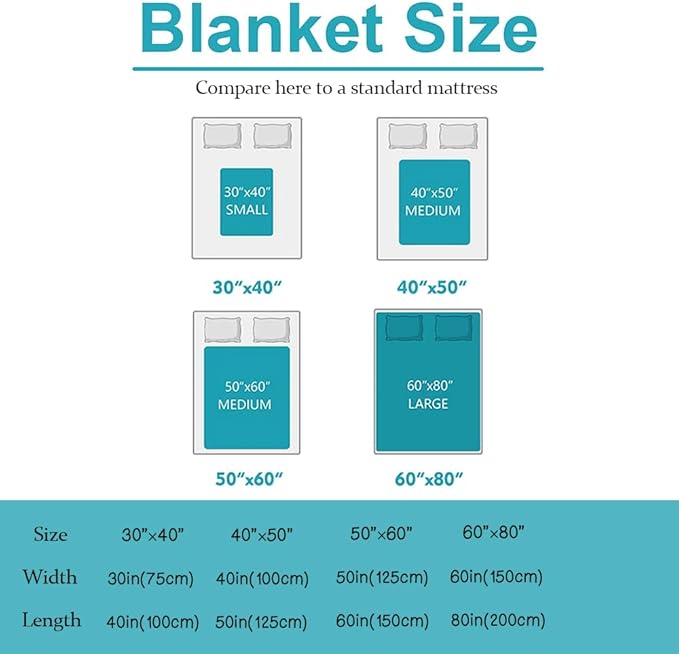 - Suitable Size: 30 " x 40 " is suitable for newborns, baby, pets. 40 "x50 " is suitable for kids. 50 "x60 " is suitable for teens, boys, girls or take a nap. 60 "x80 " is suitable for adults