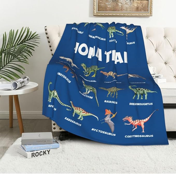 - Dinosaur Blankets for Baby: Featuring various dinosaur patterns with names, this blanket not only helps to improve children's cognitive skills but also adds to the fun of learning. Add kids name, It's gonna be a special gift just for boys or girls