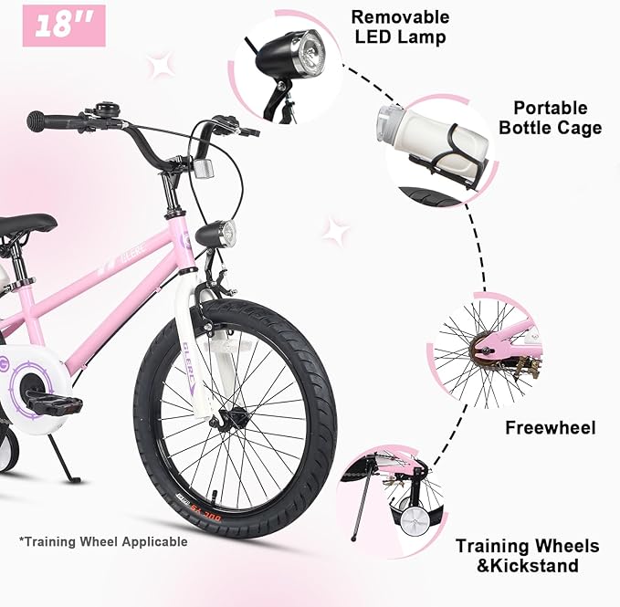 - 【Ready for Adventure】This kids bike features a water bottle holder and a safety LED light, perfect for outdoor adventures, keeping your child visible and hydrated.
