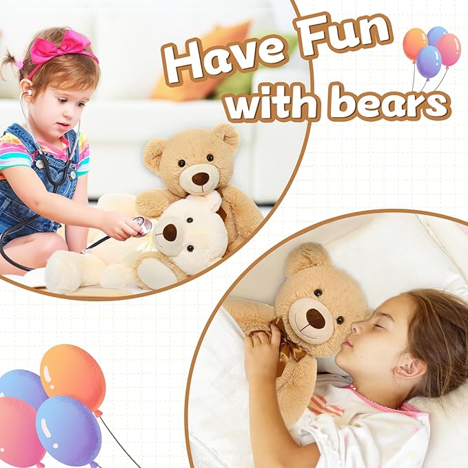 - Huggable& Companionable: These soft plush bear animal toys are perfect for snuggling and lounging. They have a larger size and have sweet smiles and adorable faces, it is 100% Polyester