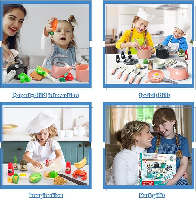 - Realistic Kitchen Playset & Food - Realistic cooking set encourages imagination, dexterity, and creative play, Teaches your little ones to be mother's little helper. The kettle can be filled with water and the spout can be pulled out, Give your child a gift that creates countless happy moments!
