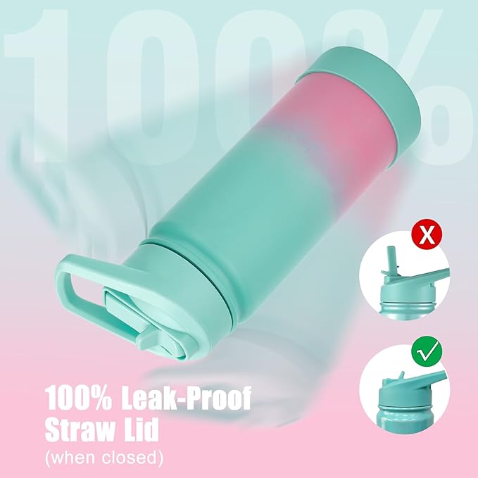 - LEAK-PROOF STRAW LID - Stainless steel water bottles kids comes with a BPA-free straw lid , the design of the straw can prevent ice from cutting the child's mouth causing damage. kids insulated water bottle has a thickened sealing ring, offers a tight seal to prevent spills and leaks; So your kids won’t have to worry about pulling out soggy art projects or last-minute homework
