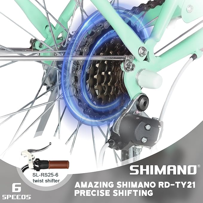 - 【High Performance】The beach cruiser bike features a Shimano 6-speed gear system and a high-carbon steel frame, helping you conquer steep hills with ease. Suitable for a variety of scenarios, from leisurely rides to long-distance commuting.