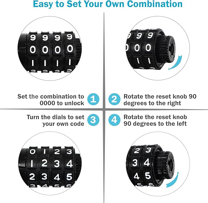 - Convenience - Resettable 4-digit combination locks are secure and hassle free. No risk of a stolen or lost key