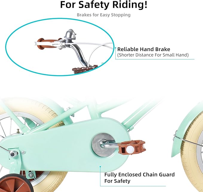 - 3, Safer Riding! The Front hand caliper Brake plus rear drum brake offer ample stopping power with more safety, wide 2.125" pneumatic tires add more stability, Sturdy steel frame and crank, Non-slip resin pedal, enclosed chainguard, front & rear reflectors and wheel reflectors make this bike safe to ride.