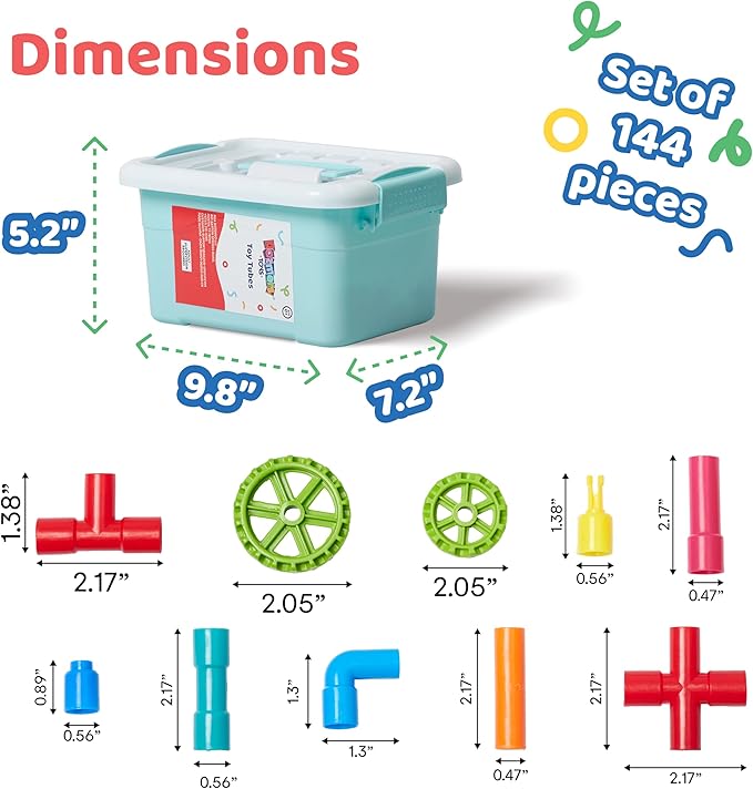 144 PCS STEM Pipe Building Blocks - Colorful Tube Construction Set for Kids Age 3+, Sensory Educational Learning Toys for Boys & Girls, Creative Engineering Building Kit for Preschool & Toddlers