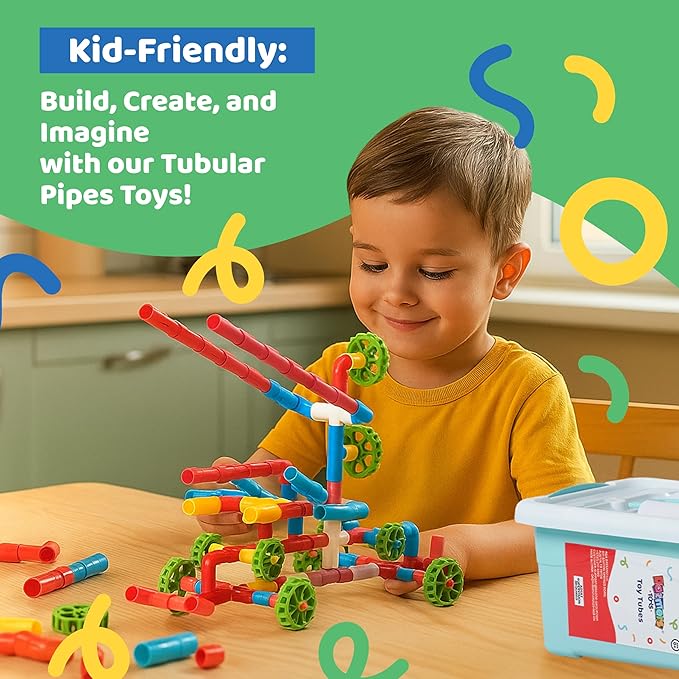 - 144 PCS Colorful Pipe Building Blocks – Creative STEM set with 144 interlocking tubes for kids 3+ to build shapes, vehicles, and animals while boosting creativity and imagination.