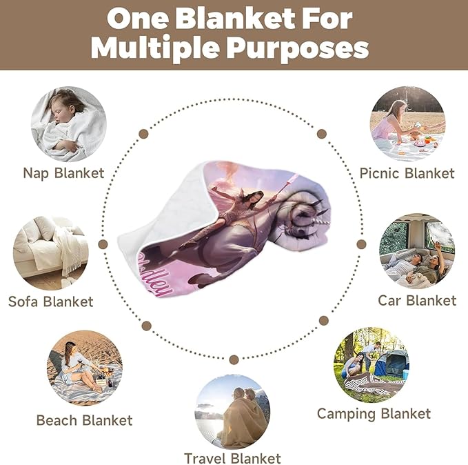 Zocoshi Personalized Princess Blanket - Kids Unicorn Design, Custom Photo Gift with Monogram, Cozy Keepsake for Baby Girl, Soft Plush Throw, Perfect Birthday Baby Shower Present