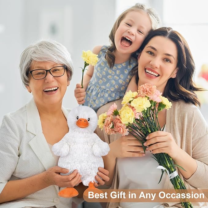 - Engaging and Lovable: Experience the ultimate comfort with our 10-inch tall white plush duck! With premium plush fur & huggable pear-shaped body, this heating pad stuffed animals offer children a comforting sense of security and foster emotional growth and resilience, definitely the best buddy when playing, napping, soothing boo boos, reading, bedtime or traveling! Also a great decoration in boy & girl's bedroom