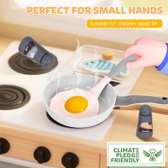- 【Realistic Kitchen Playset & Cuttable Food】Realistic cooking set encourages imagination, dexterity, and creative play, Teaches your little ones to be mother's little helper. The kettle can be filled with water and the spout can be pulled out. you can peel the banana, fillet the fish and take the peas out of the pod. Give our product as a gift to your child and they loves to make “food” and cook for you in their kitchen
