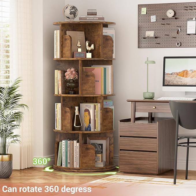- 【Space saving】This revolving bookshelf maximizes the utilization of narrow space. Unlike other ordinary bookshelves, our bookcases occupy less space but have a larger capacity. perfect for corners and small spaces. utilizing unused small spaces can maximize enlarging your living space and make your place more personal. it is very suitable as a gift for family or child.