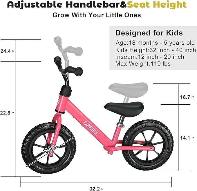 - Toddler-friendly design: The two-wheeled balance car is more upgraded, close to the bicycle, Bobike bike body is made of strong and durable carbon steel. Adjustable seats and handles can change as children grow up.