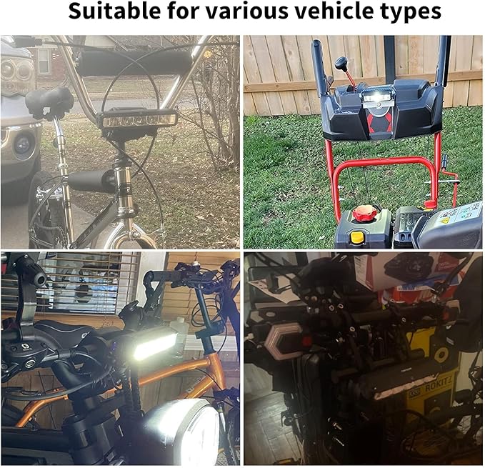 - STEADY & EASY INSTALLATION: Mounting the base and bike lights itself made of high-quality aluminum alloy ,which is very sturdy and stablize, has good impact resistance and heat dissipation.The rechargeable light bar for dirtbike is very easy to install,no tools are required