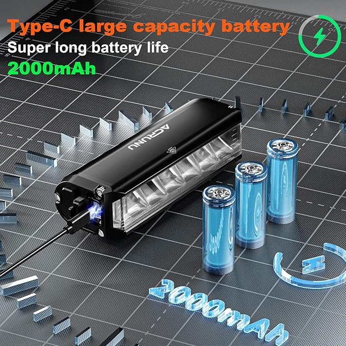 - SUPER BRIGHT & LONG RUNTIME: The bike light has three LEDs with a maximum output of 900 lumens,illuminating the road you ride at night. 2000 mAh large capacity,the running time of the headlight is 1.5-2.5 hours,which can meet your long time riding lighting needs