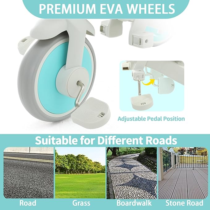 - 【Reliable Quality】Our toddler push tricycle designed to provide endless hours of fun and adventure for your little ones. Equipped with EVA silent wheels, this kids trike ensures a smooth and quiet ride for a both indoor and outdoor use. The pedals has three positions, you can turn it into a footrest or tricycle pedal mode according to your children's needs.