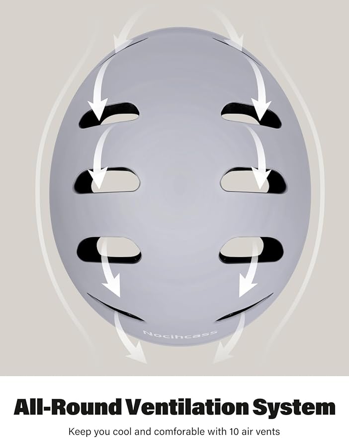- ADJUSTABLE & VENTILATION-The chin strap and scalloped buckle can be tightened or loosened to adjust size, with the rotating back dial system help you fit snugger. Skate helmet with 10 vents to reduce resistance and breathable, always keep cool and comfortable every ride.