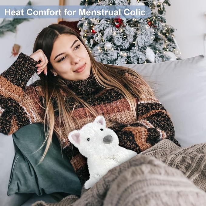 - Say Goodbye to Monthly Discomfort: Don't suffer alone, when you're facing menstruation, let this westie period heating pad ease your menstrual discomfort! Just microwave our heatable stuffed dog! Our cute dog can turn into a period heat pack, releasing 20 mins soothing moist heat to promote circulation and ease period discomfort, which is a perfect first period gifts for girls