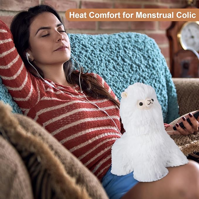 - Ease Monthly Discomfort: Don't suffer alone, when you're facing menstruation, let this heated stuffed animals ease your menstrual discomfort! Just microwave stuffed animals! Our alpaca stuffed toys can turn into a period heating pad, releasing soothing moist heat to promote circulation, light lavender scent to relax you, which is a good menstrual heating pad gift for girls and women