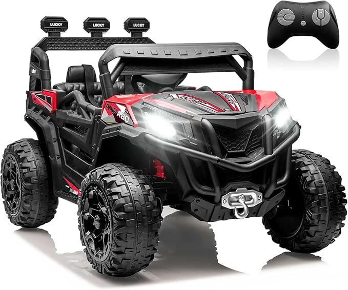 - ENJOY MORE DRIVING FUN: Keep the fun rolling with a built-in music player, Bluetooth, and USB connectivity for their favorite tunes. Realistic foot pedal, horn, engine sounds, and dazzling LED lights create a truly immersive driving experience. A convenient rear storage compartment is ideal for stashing toys or snacks. This kids ride on toys is a perfect gift for birthdays, Christmas, and other special occasions