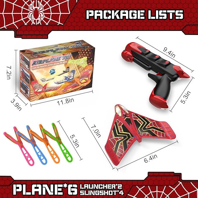 - 6 Pack Airplane Toys - Our plane toy is equipped with 6 different colors of red, green, orange, blue, black and white gliding foam planes, 2 plane launcher, and 4 slingshots. Throwing planes by hand or flying them with launcher or slingshot, kids can cultivate their hand-eye coordination, observation, and sense of direction.