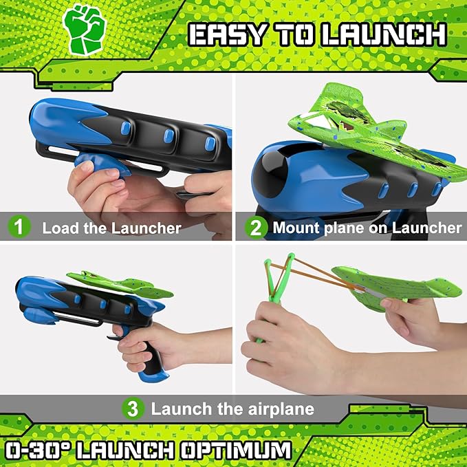 - Up to 49ft - This catapult airplane has an effective range of 49 ft, with lightweight, impact resistance, good flexibility, convenient carrying, high-performance free flight advantage. Using a slingshot to launch will allow for better control of distance and direction, thus exercising the child's control of strength.
