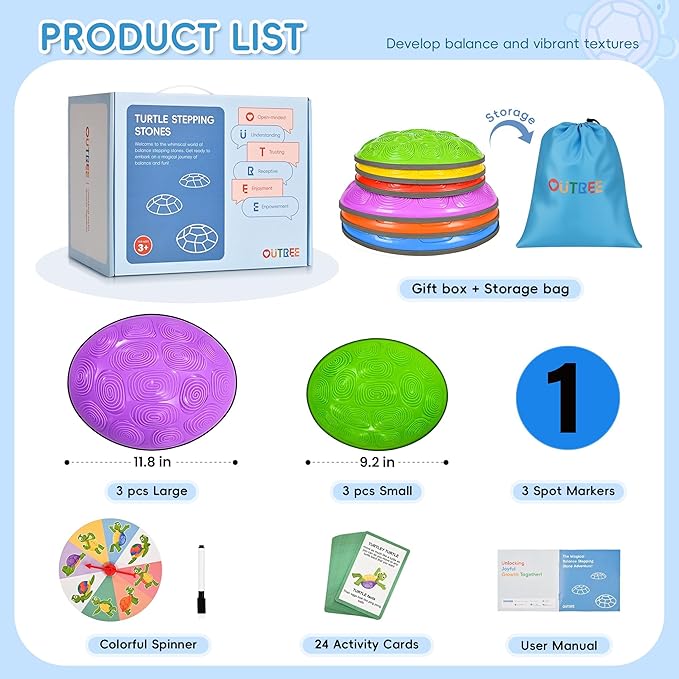- Balance And Body Control: OUTREE turtle stepping stones are great for obstacle courses for kids, they can walk, stand or jump on the stones, practicing balance while promoting sensory integration. Toddler stepping stones also can be used for the floor is lava