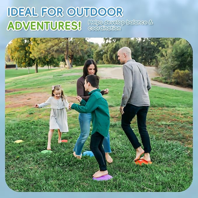 - Non-slip Bottom Design: Our stepping stones feature a non-slip surface and thick rubber bottom, making them friendly for kids to play on any surface, including carpet, floor, and grass. Each balance stone with beautiful color can hold up to 200 lbs