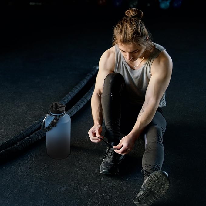 64 oz Insulated Water Bottle with Straw & Spout Lids, Stainless Steel Metal Half Gallon Water Jug with Paracord Handle, Double Wall Vacuum, Leakproof, Keep Drinks Cold & Hot, Blue Black Gradient