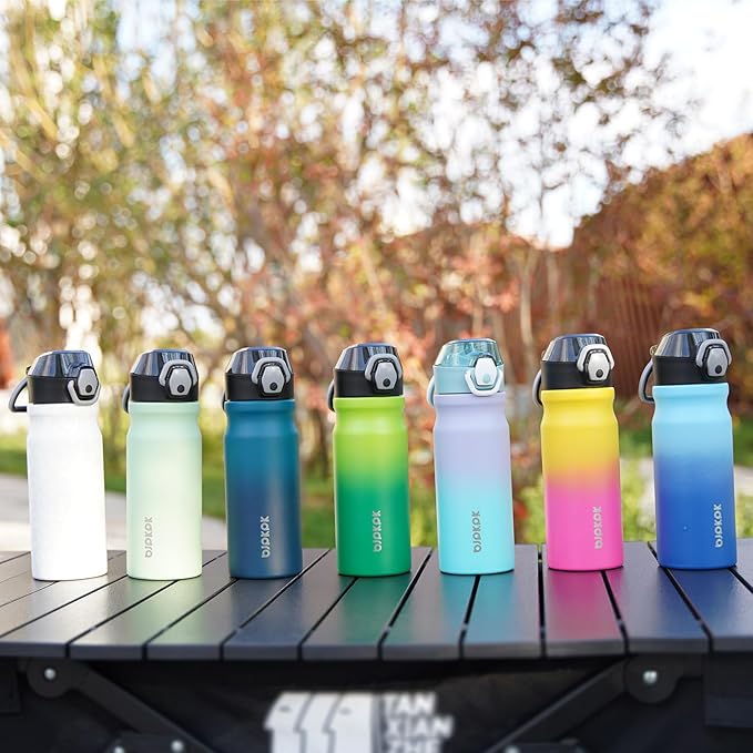 - Leak Proof Locking Lid: Open Your Insulated Water Bottle With The Simple Push Of A Button, Easy For One-Handed Use, The Bottle Has A Protective Cap That Keeps The Drinking Spout Clean, Has A Silicone Locking Latch To Prevent The Lid From Opening