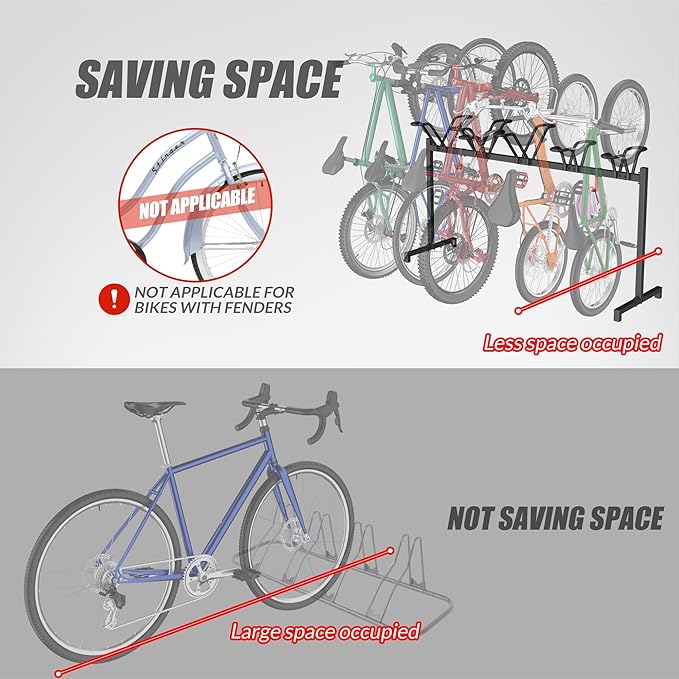 - Free Combination: Central Beauty of our bike rack is free combination. It comes with 7 V-brackets, 2 of which are additionally designed for kids bikes or adult scooters under 18". 5 larger V-brackets are suitable for adult bikes up to 2.5" tire width. According to your needs, you can freely combinate these brackets to achieve the effect of "a multi-purpose" . The rack can comfortably fit 5 bikes, great for most kinds of bikes, including road bikes, mountain bikes, hybrid bikes and kids bikes.