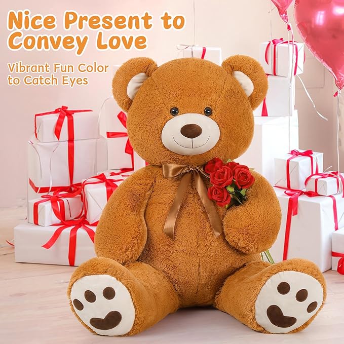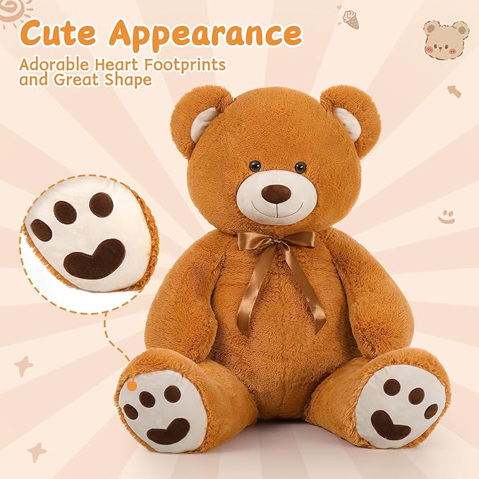 MorisMos 47inch Giant Teddy Bear Stuffed Animal 4ft, Big Teddy Bear Plush for Baby Shower, Life Size Stuffed Bear Gifts for Kids, Girls, Girlfriend, Women on Valentine, Christmas, Birthday(Brown)