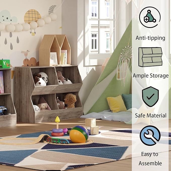 - 【Design for Child Safety】 Comparing to the slanted base, the widened and vertical base not only expands the storage space, but also enhances the stability, preventing the toy organizer from tipping over. Anti-tip kit also frees you from the worry of dumping. Fine edges, smooth finish prevent children from hands injuries