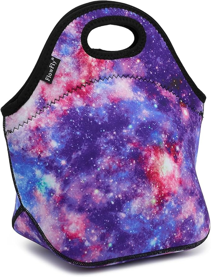 FlowFly Neoprene kids Lunch box Insulated Soft Bag Mini Cooler Thermal Meal Tote Kit for Boys, Girls,Men,Women,School,Work, Office, Galaxy