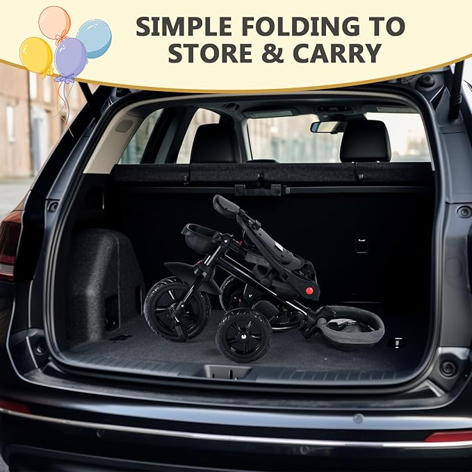 - Simple To Fold: The toddler trike folds quickly for easy storage and travel; The central and rear foot pedals are foldable; There is a front wheel clutch to release or limit the foot pedal; The front handle is collapsible; Detachable armrest