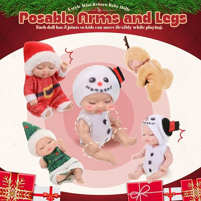 - Christmas Gifts: these 4 inch mini baby dolls are not only funny decorations for home and Christmas parties but also suitable for Christmas party prizes, Christmas goodies bags, Christmas stocking stuffers, Christmas gifts set for kids, treasure chests or treasure box prizes for school classroom