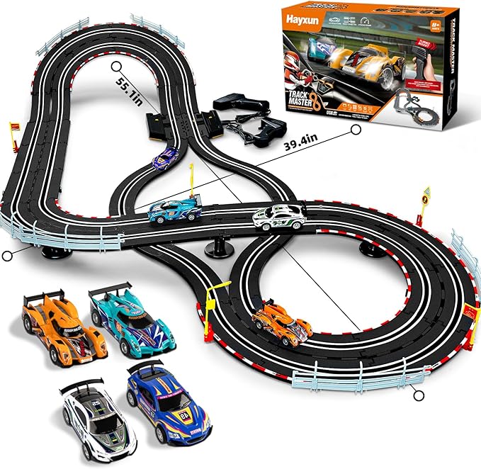 - 【Christmas Gifts for Kid】Searching for that exceptional gift that brings smiles all around? Hayxun slot car race track is the present for individuals of all ages. Whether it's for birthdays, holidays, or special occasions, it's a gift that ignites joy, laughter, and creates unforgettable memories that will be cherished for years to come.