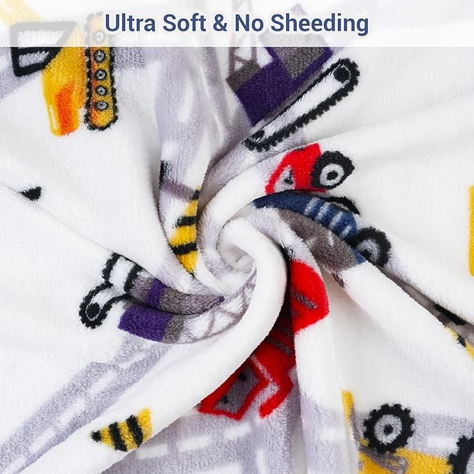 Viviland Kids Truck Print Blanket, Soft Warm Lightweight Plush Fleece Throw for Sofa, Chair, Couch, Bed - 30" x 40"
