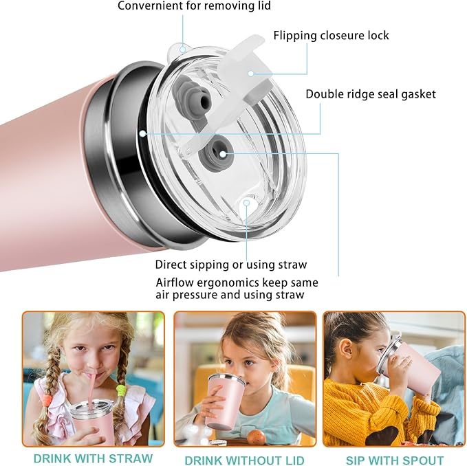 - ★Multifunctional Lids - Each kids tumbler comes with BPA Free crystal lids which reinforce with silicone sealing ring for spill proof. 2 way drinking holes on the top for easy sipping and straw friendly. Perfect for drinking milk or juice with straw, sipping smoothies or beverage, holding dry food, snacks or nuts.