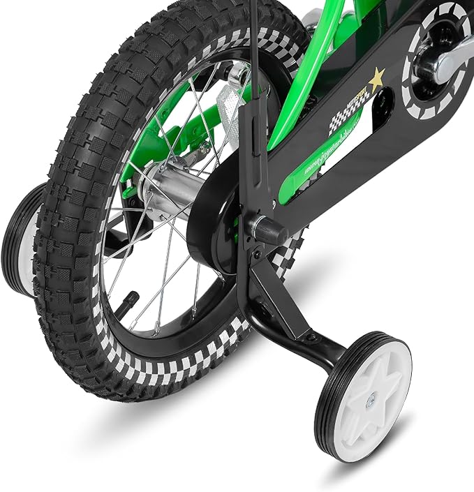 - Amazing Design and Color - JOYSTAR Little Rock Boys bike with Bright colors, stylish and charming. DIY decals, cool bike flag and number plate add extra fun to the ride. They have adjustable saddle & stem height for a better fit for easy pedalling. Complete with a bell that lets everyone know he's on the move.
