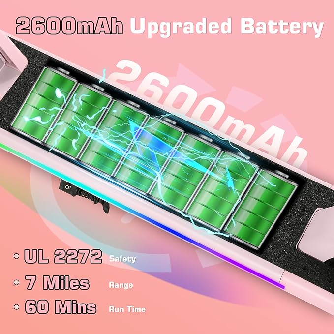 - Colorful LED Lights: Available in five colors, the Caroma electric scooter for kids ages 8-12 is equipped with colorful pedal lights, which not only makes riding stylish and fun but also improves visibility and safety on the road. The beautiful and dynamic light bar will make children's childhood time full of energy and joy
