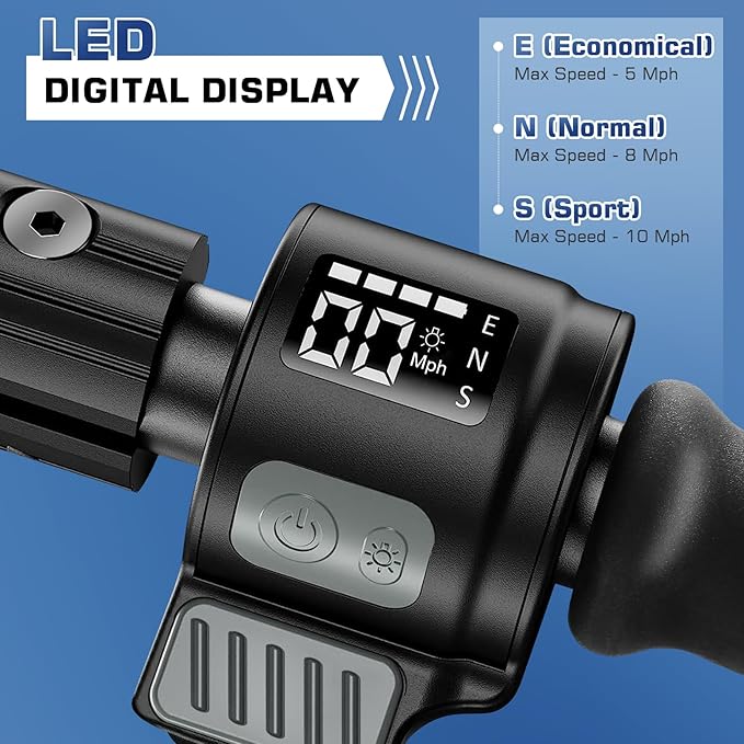 - Special Feature : Adjustable Handlebar Height, Digital Display, Foldable, Lights