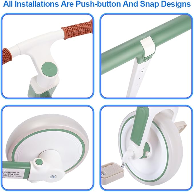 - 【Easy To Install】: It only takes 1 minute to install the bike, all of tricycle mounts are push-button and snap-on design, very easy to install. The footrests can be stored under the frame and the push bar can be adjusted according to the height of parents (you don't have to bend over, even if you're 70 inches tall), kids will grow up happily with it
