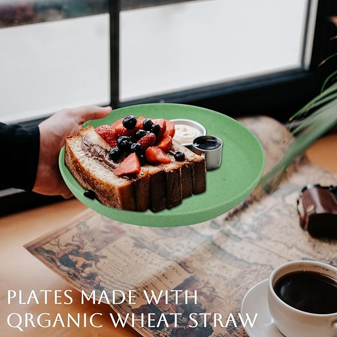 - COLORFUL REUSABLE PLATES: Our Wheat straw plates come in 4 colors, Green Series. Each color will give you a lot of fun while you use the colorful plastic plates, and your kids will love them too