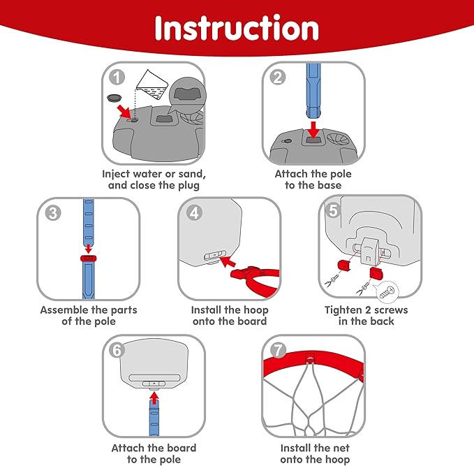 - Safe & Stable for Toddlers: Made with child-safe rounded materials and a sturdy base, this kids basketball hoop ensures worry-free fun. For best stability, please fill the base with water or sand before play