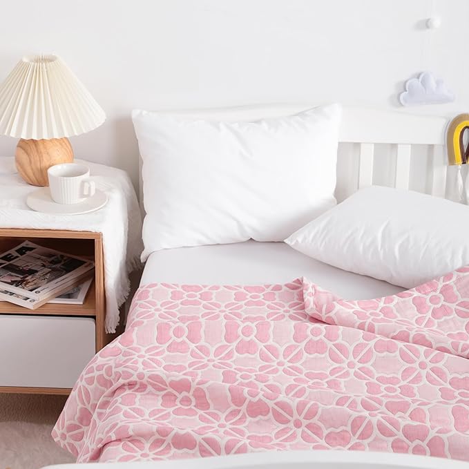 NTBAY 3 Layer Oversized Muslin Cotton Toddler Blanket, 45x60 Inches Jacquard Reversible Nursery Bed Blanket, Super Soft and Thermal Crib Blanket for All Seasons, Baby Gift, 45"x60", Pink Clover