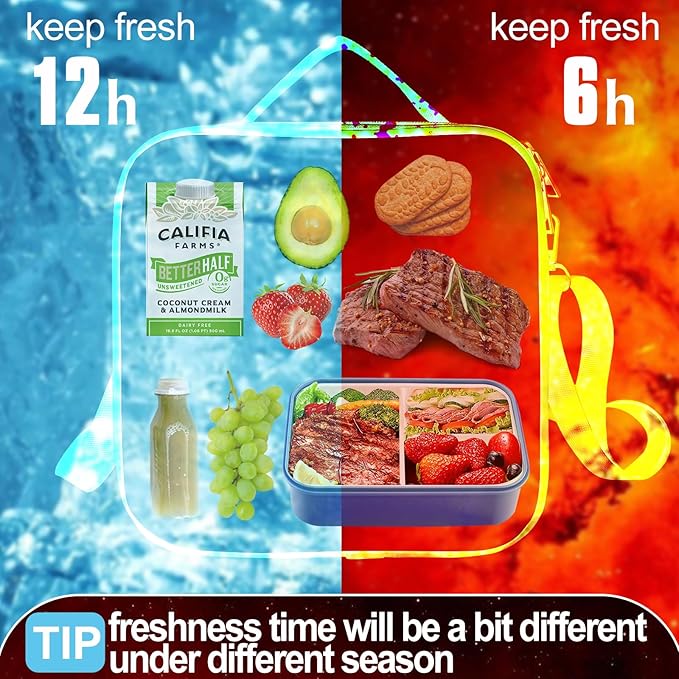 - CONVENIENT ZIPPER CLOSURE: The small lunch bag features a double zipper closure to keep items safe while traveling. The ice pack can be placed on the back and unzipped to fully open for easy packing and unpacking, the secure zipper closure ensures smooth opening, tear resistance and maximum durability. (Age:over 3 years old)