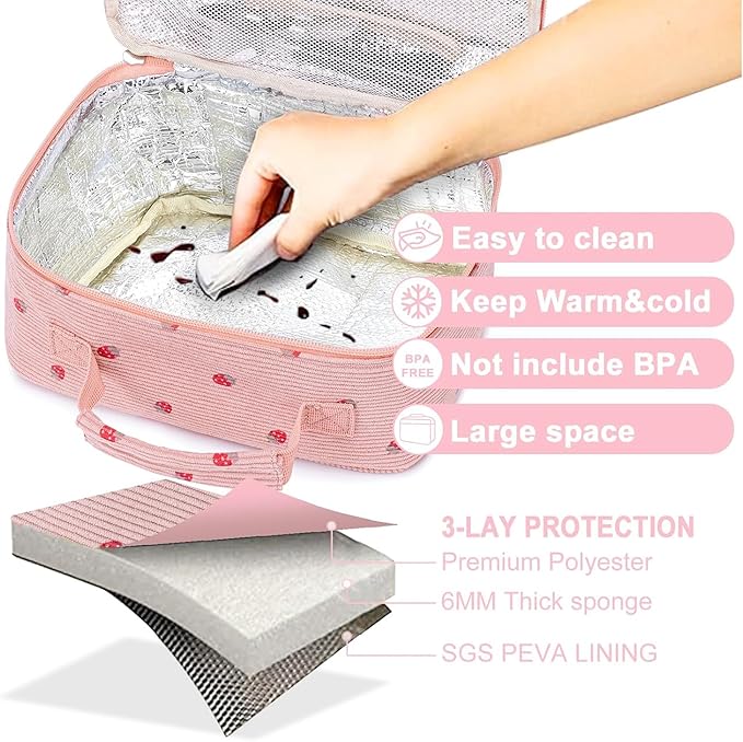 - Simple pink strawberry corduroy Lunch Box, lightweight and durable, suitable for anyone including girls, boys, kids, toddlers take to school or women/men take to work.