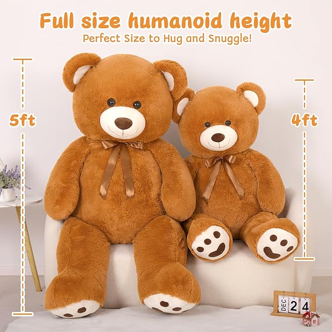 MorisMos Giant Teddy Bear Stuffed Animal 5ft, Large Life Size Big Teddy Bear Plush Gifts for Wife, Girlfriend, Women on Valentine, Christmas, Baby Shower
