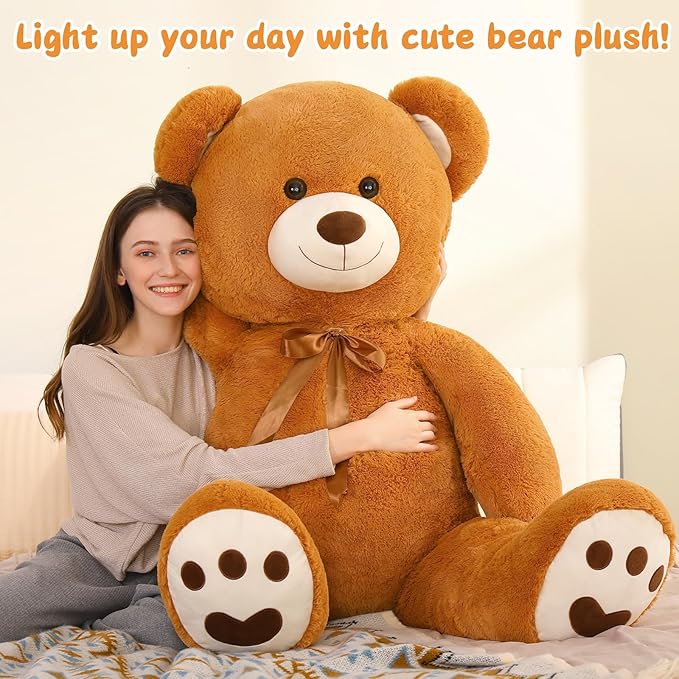 - Skin Friendly & Hand Stitching: The giant teddy bear is made of safe materials, providing softness and comfort. Absolutely an ideal gift for your loved one. The carefully sewn silk thread makes the large stuffed bear more sturdy and durable, without worrying about causing holes to scatter the filling material everywhere