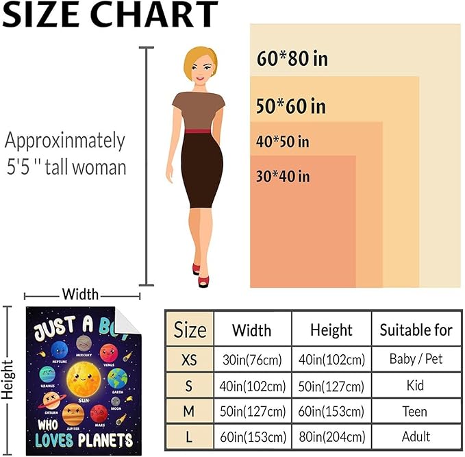 - Multiple Color Options and Machine Washable: Our cute planet blanket is printed one side, with many patterns to choose, whether you prefer bold and bright colors, intricate patterns, or more subtle designs, you'll find the match. Machine washable for easy care and maintenance, we recommend machine washing in cold water and tumble drying on low heat, your blanket will remain soft and comfortable for years to come.